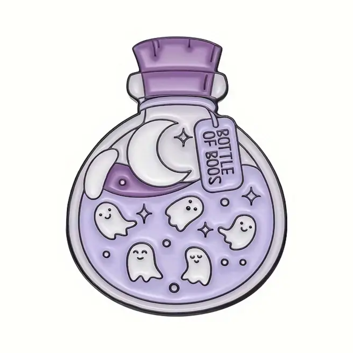 Add to your novelty pin collection with this adorable Bottle of Boos enamel pin.