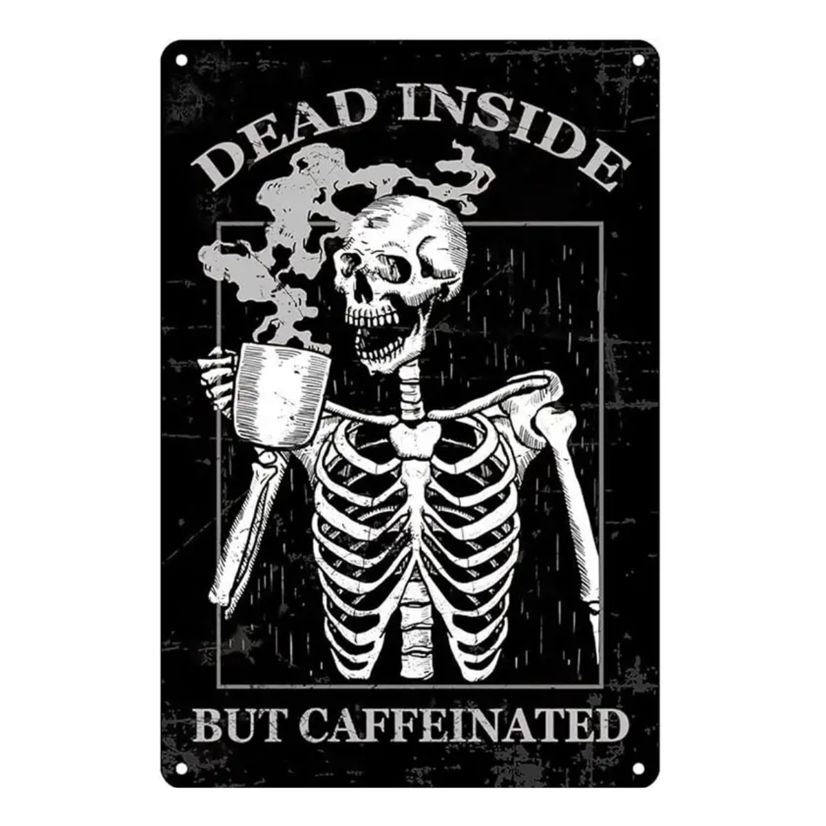 Creep up your space with this hilarious Dead Inside but Caffeinated tin sign!