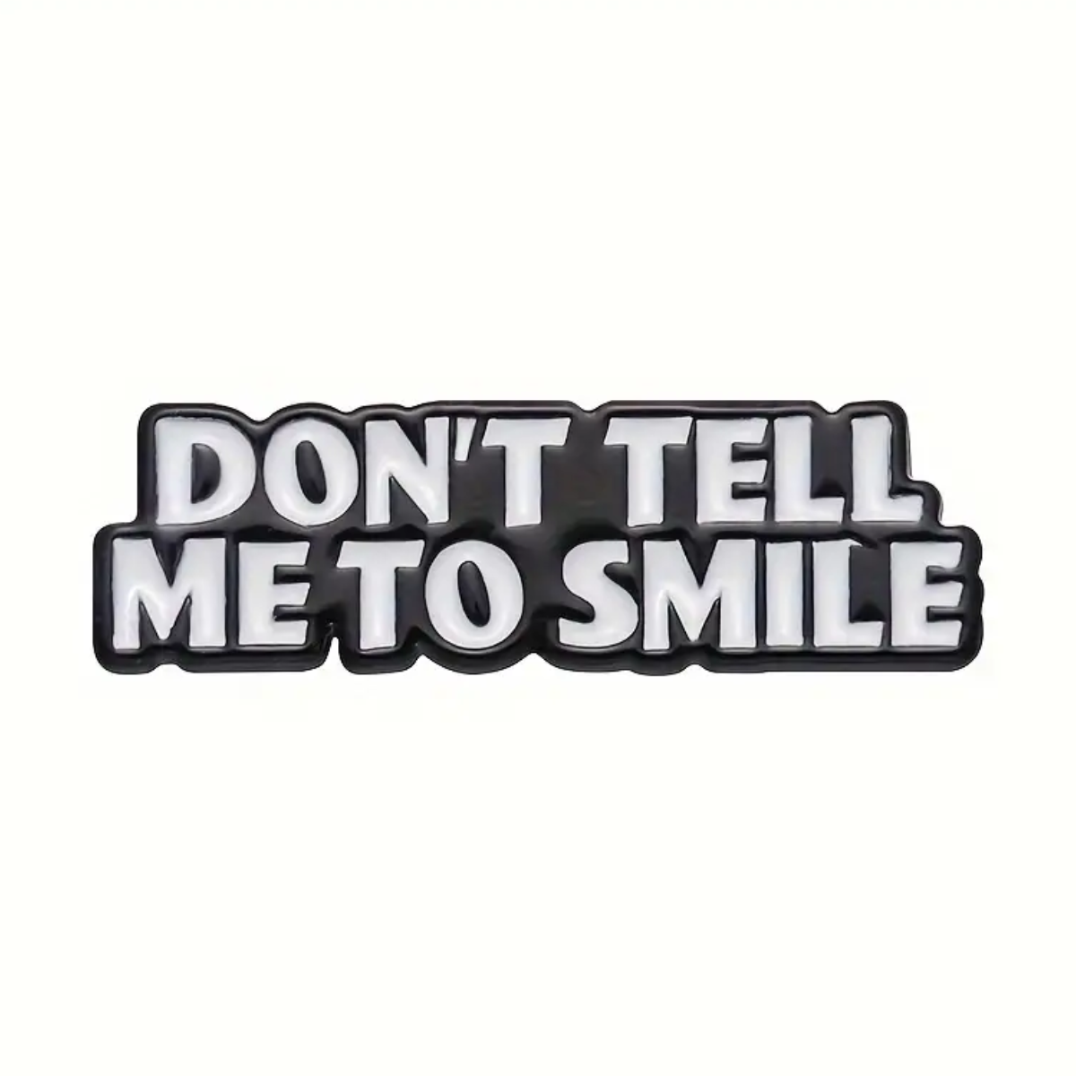Add to your novelty pin collection with this funny Don’t Tell Me to Smile enamel pin.