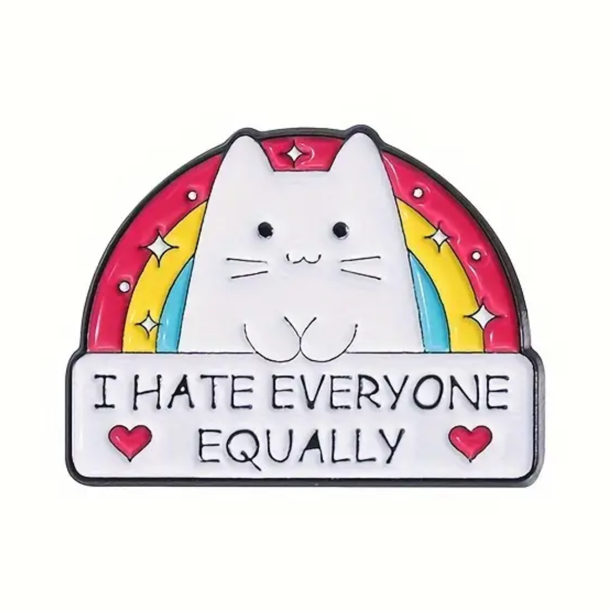 Add to your novelty pin collection with this hilariously accurate I Hate Everyone Equally enamel pin.