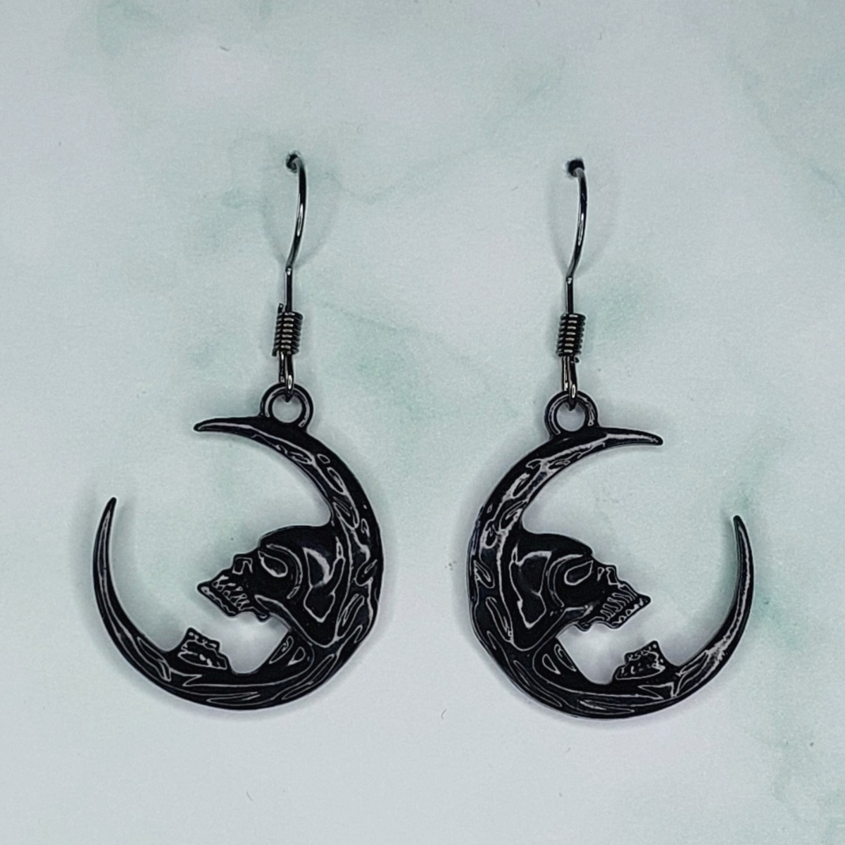 Make a statement and stand out from the crowd with these creepy Skull Moon earrings.