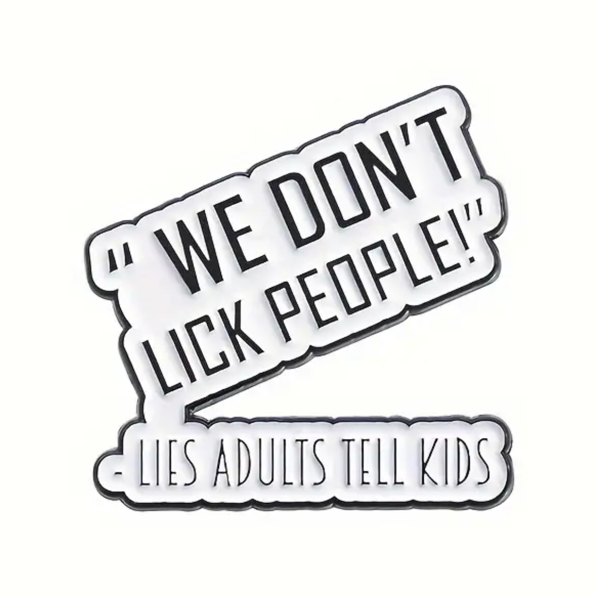 Add to your novelty pin collection with this hilarious We Don’t Lick People enamel pin.